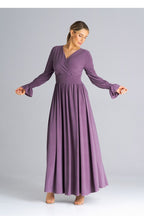 Here is a beautiful maxi dress that stands out with its unique style. The buffet sleeves are decorated with creases with elastic bands, adding elegance and charm. The neckline is overlapped, which gives the dress subtlety. Crinkled at the waist, it emphasizes the waist and adds lightness. On the left leg there is a striking break, which gives the dress a touch of sex appeal and allows it to move freely. This is a dress that is sure to attract attention at various events, adding to your confidence and style.