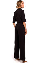 Elegant and minimalist, overalls with straight legs and a fitted top that ends in a collar. Covered zipper, pockets on the sides. Thanks to its simplicity combines with various accessories and suits all occasions as well as for everyday wear to work.